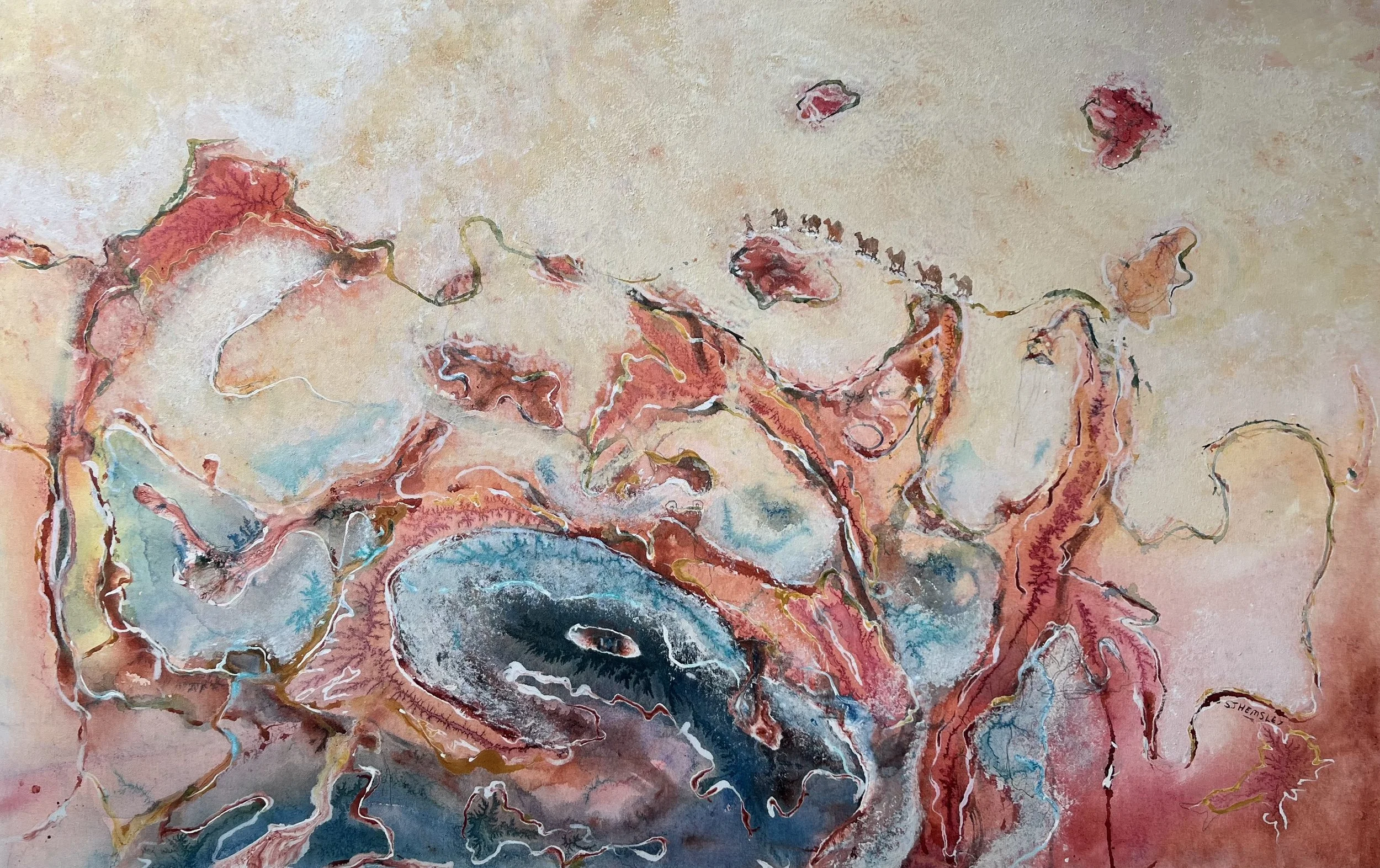 ULURU, THE WET FACE” Mixed media on canvas 99x154 cm Framed